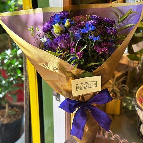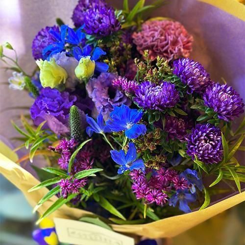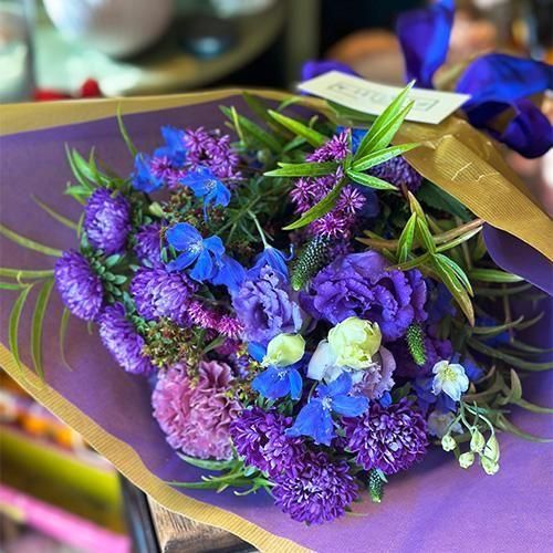 パープルとブルーのグラデーションで仕上げました。星が輝く明るい夜空のように静かで美しいブーケです。