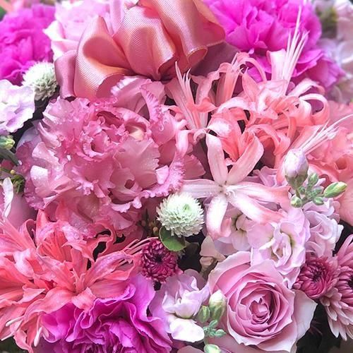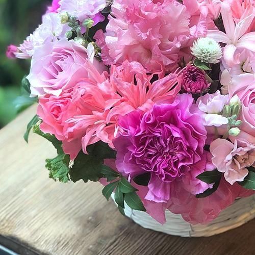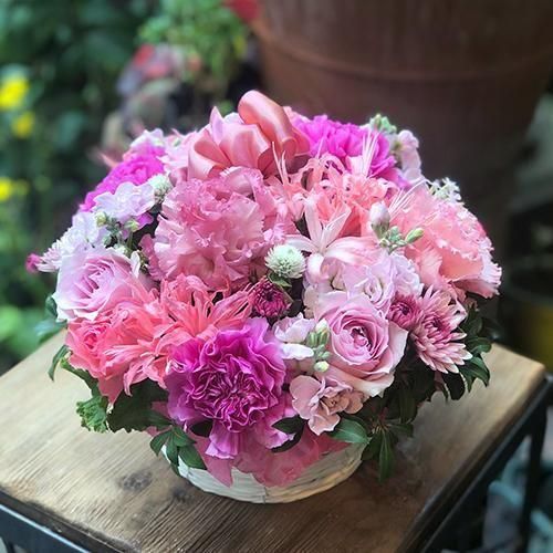 甘さをおさえたピンクを塗り重ねるように丁寧にミックスしました。絶妙なグラデーションが美しくエレガントなアレンジメントです。
