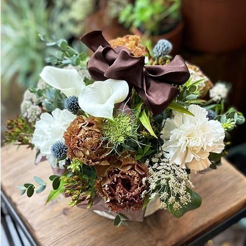 まるでビターショコラにホイップクリームを添えたような上品な甘さが漂います。雰囲気ある色合わせが魅力的です。