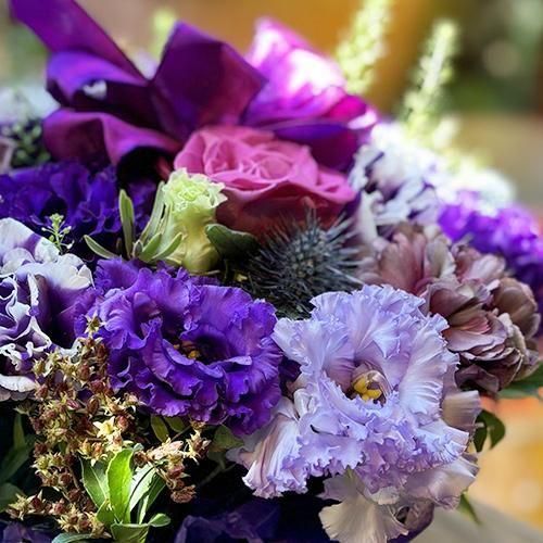 花材:リシアンサス、バラ、など