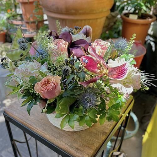 秋風が通り抜ける草花たちの軽快なアレンジメント。草原の景色を切り取ってきたようなナチュラルな表情は、自然を感じる贈り物に。